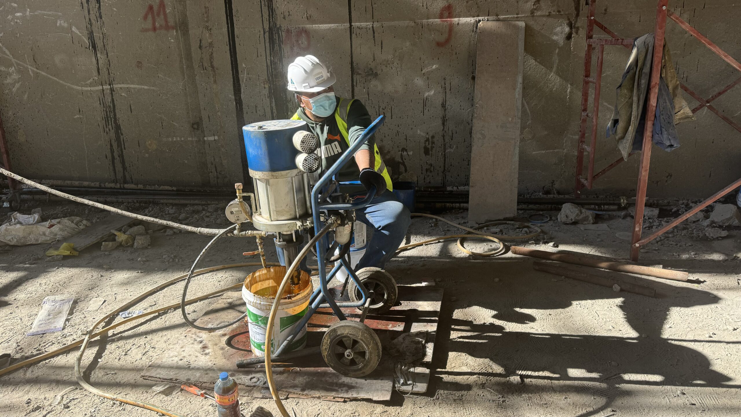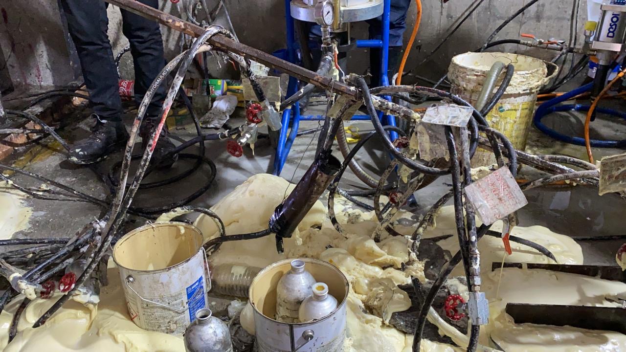 • Application of PU grout to waterproof active leaks in tunnels and galleries