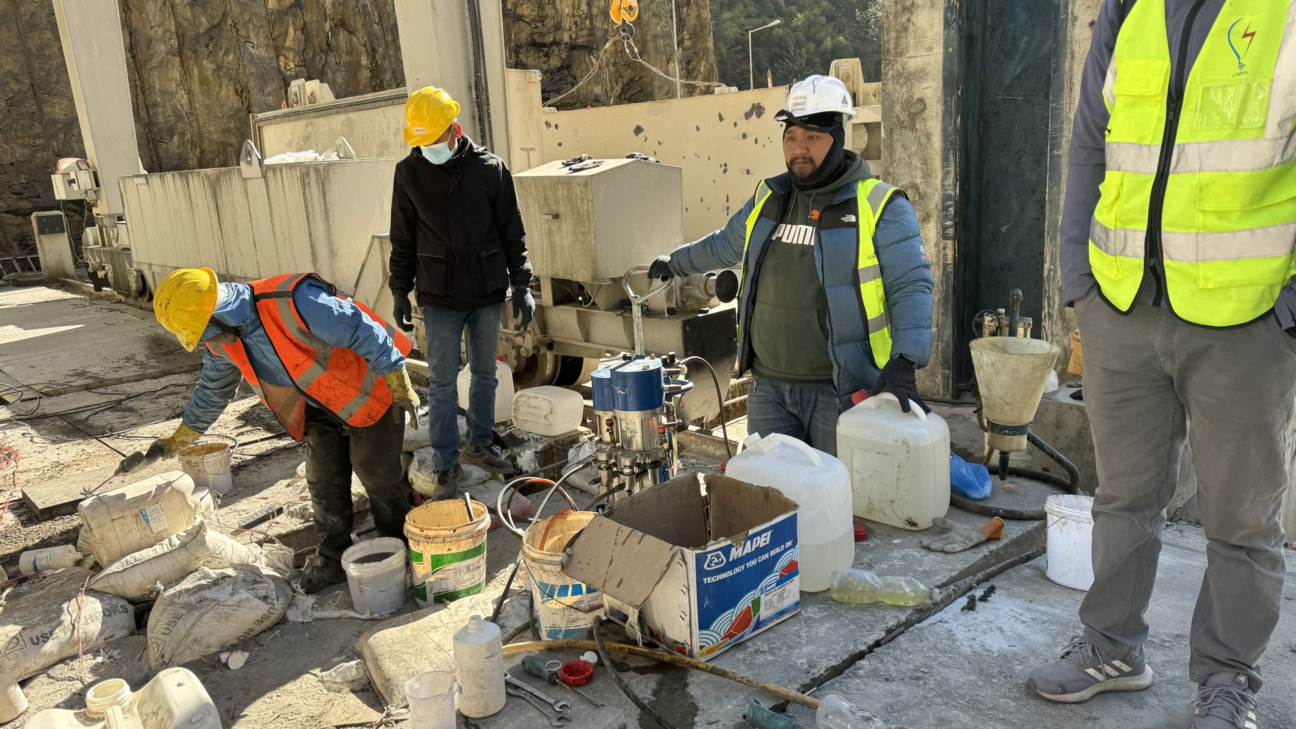As part of the construction and quality assurance phase of the Upper Tamakoshi Hydropower Project, specialized epoxy and polyurethane (PU) grouting works were carried out to ensure water tightness and structural integrity of critical concrete components.