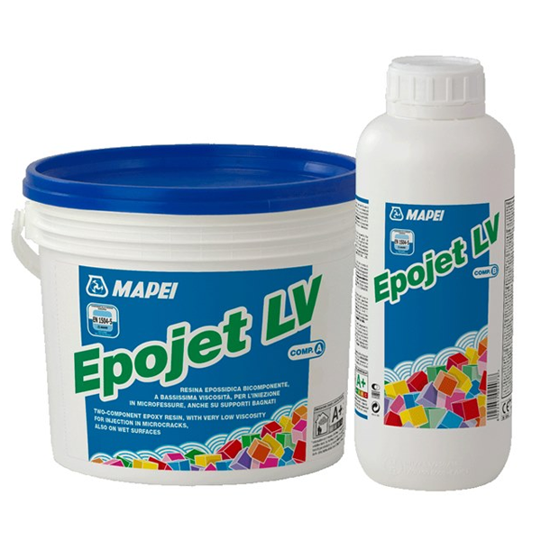 Mapei Epojet LV 40 is a two-component, low-viscosity epoxy resin designed for injection into microcracks in concrete and masonry structures, even on damp surfaces. It provides strong adhesion, chemical resistance, and waterproofing, making it ideal for structural repairs, crack sealing, and bonding applications.